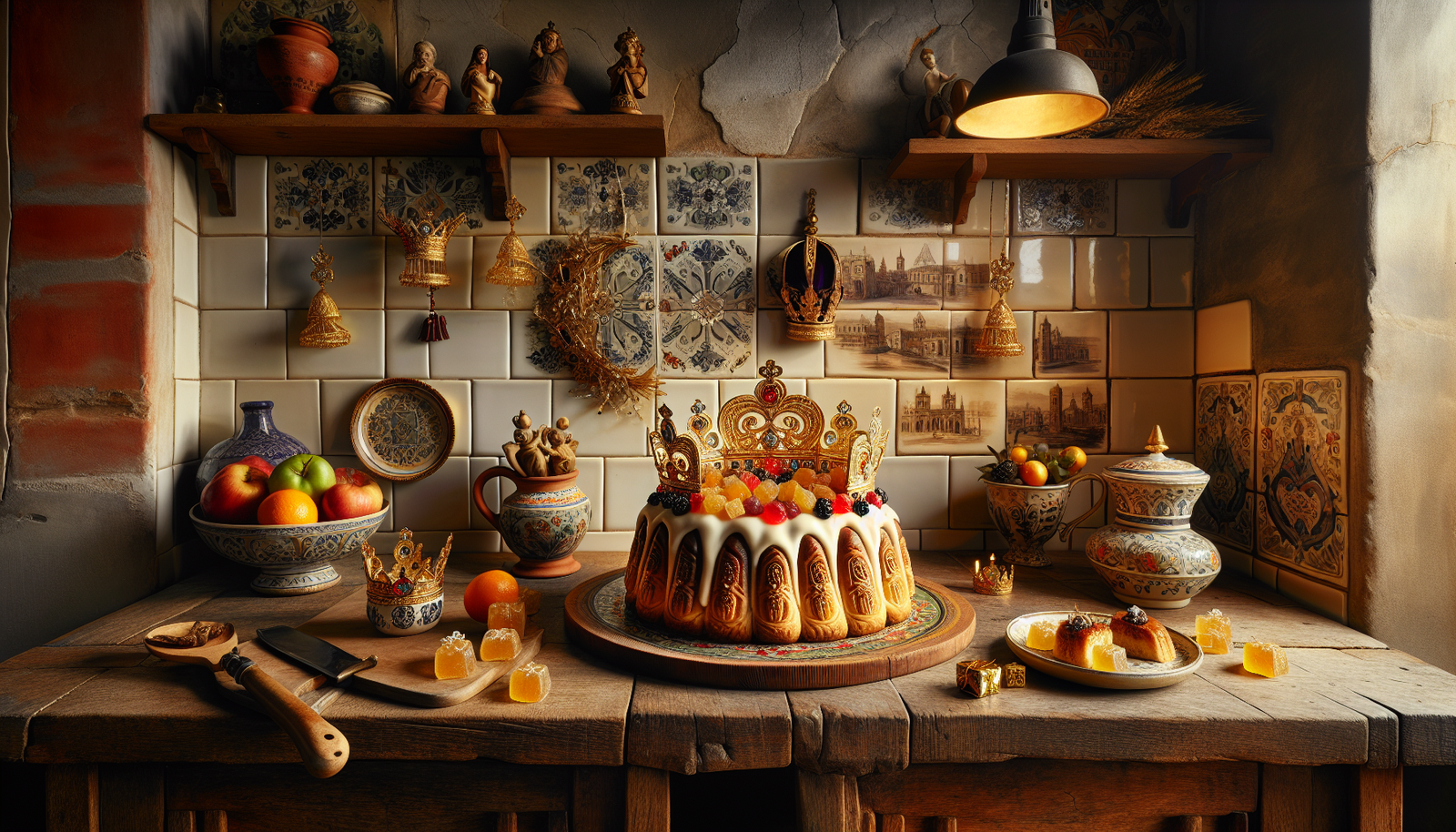 - Frutas escarchadas: representan las joyas incrustadas en la corona real.