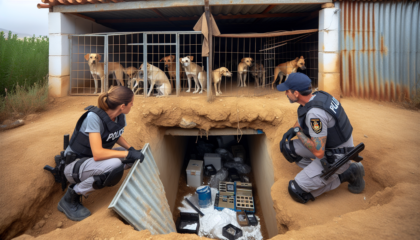 El mayor impacto del caso fue el hallazgo del laboratorio situado justamente bajo una perrera. Según explicaron las autoridades, esta estrategia servía para camuflar olores y movimientos sospechosos, dificultando tanto el seguimiento como la detección por parte de vecinos y las fuerzas del orden.