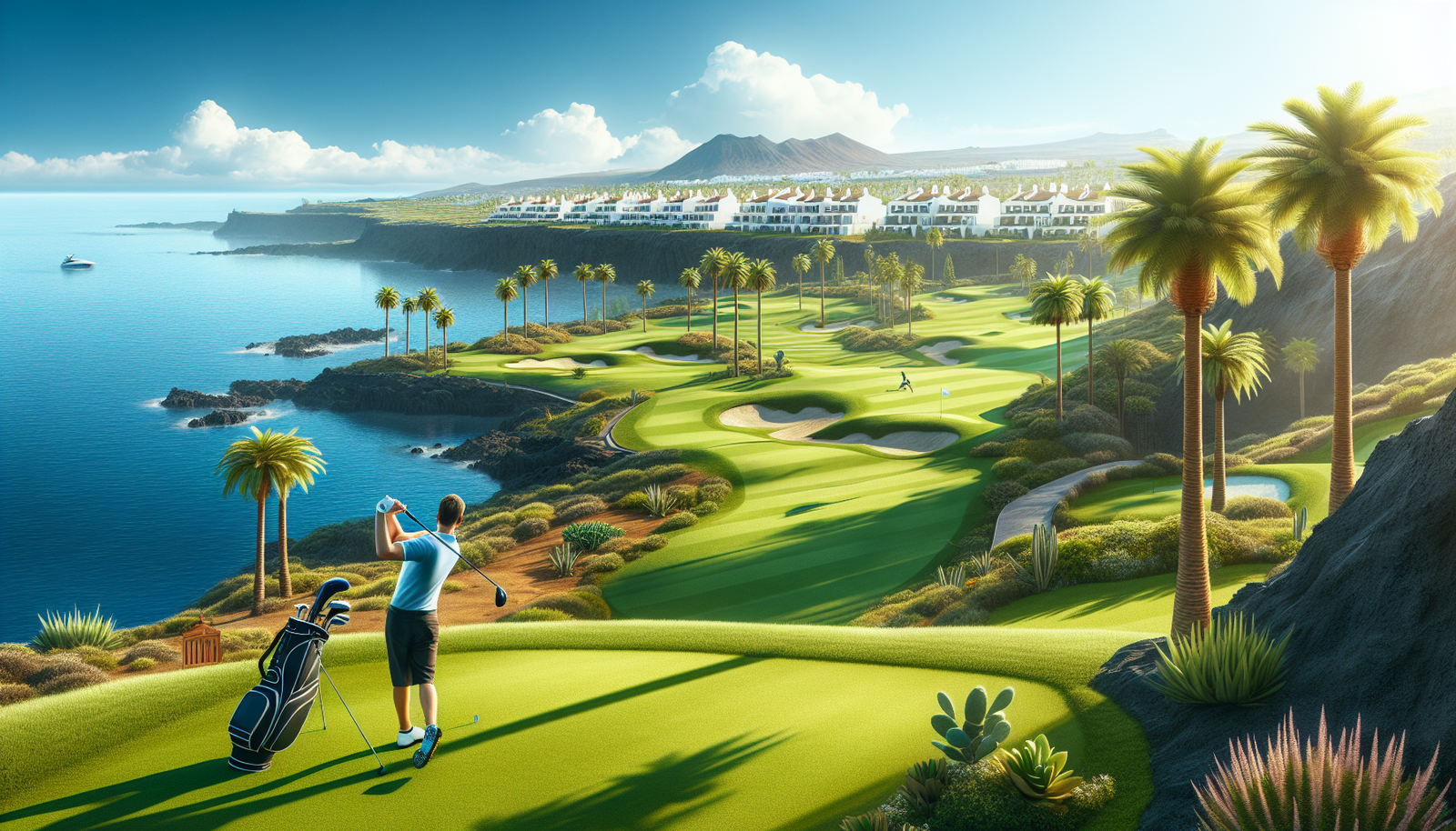 - Golf Costa Adeje (Tenerife): Construido sobre antiguos platanales, tiene un diseño único que se adapta al terreno natural, con hoyos que se asoman al mar desde acantilados verdes.