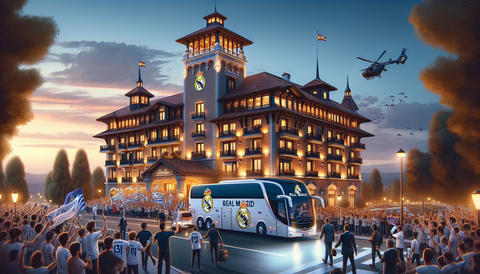 Desde tempranas horas de la tarde, decenas de aficionados comenzaron a congregarse a las afueras del hotel para recibir a sus ídolos. Cuando finalmente el autobús oficial del Real Madrid llegó, los vítores y cánticos no se hicieron esperar. Las estrellas del equipo, como Luka Modrić, Vinicius Jr. y Jude Bellingham, saludaron a los fanáticos y algunos incluso firmaron autógrafos brevemente.